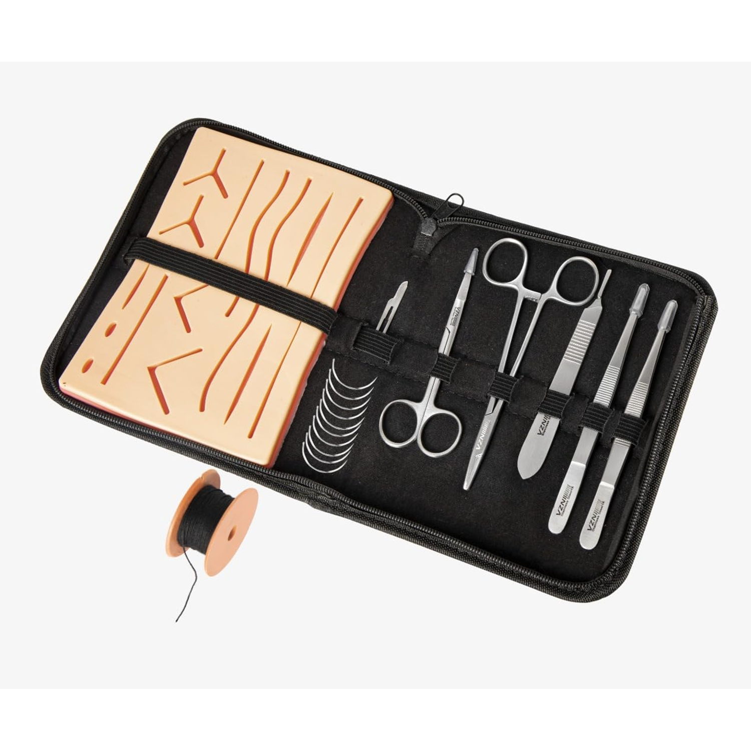 Komple Eğitim Seti: 9 parçadan oluşan bu set, cerrahi dikiş ve ligatür uygulamalarının pratiklerini yapmak için idealdir. Tekrar Kullanılabilir Silikon Ped: Gerçek doku hissiyatına sahip silikon ped, farklı sütür tekniklerini çalışmak için uygundur. Paslanmaz Çelik Aletler: Portegü, iris makası, penset ve bistüri sapı gibi aletler yüksek kaliteli paslanmaz çelikten üretilmiştir. Çeşitli Dikiş İğneleri ve İplikleri: Set içerisinde 10 adet cerrahi dikiş iğnesi ve dikiş ipliği bulunmaktadır. Taşınabilir ve Pratik: Hafif ve kompakt tasarımı sayesinde set, kolayca taşınabilir ve her yerde pratik yapma imkanı sunar. Bu ürün, eğitim ve pratik amaçlı kullanıma yöneliktir. Gerçek cerrahi müdahalelerde kullanılması uygun değildir.