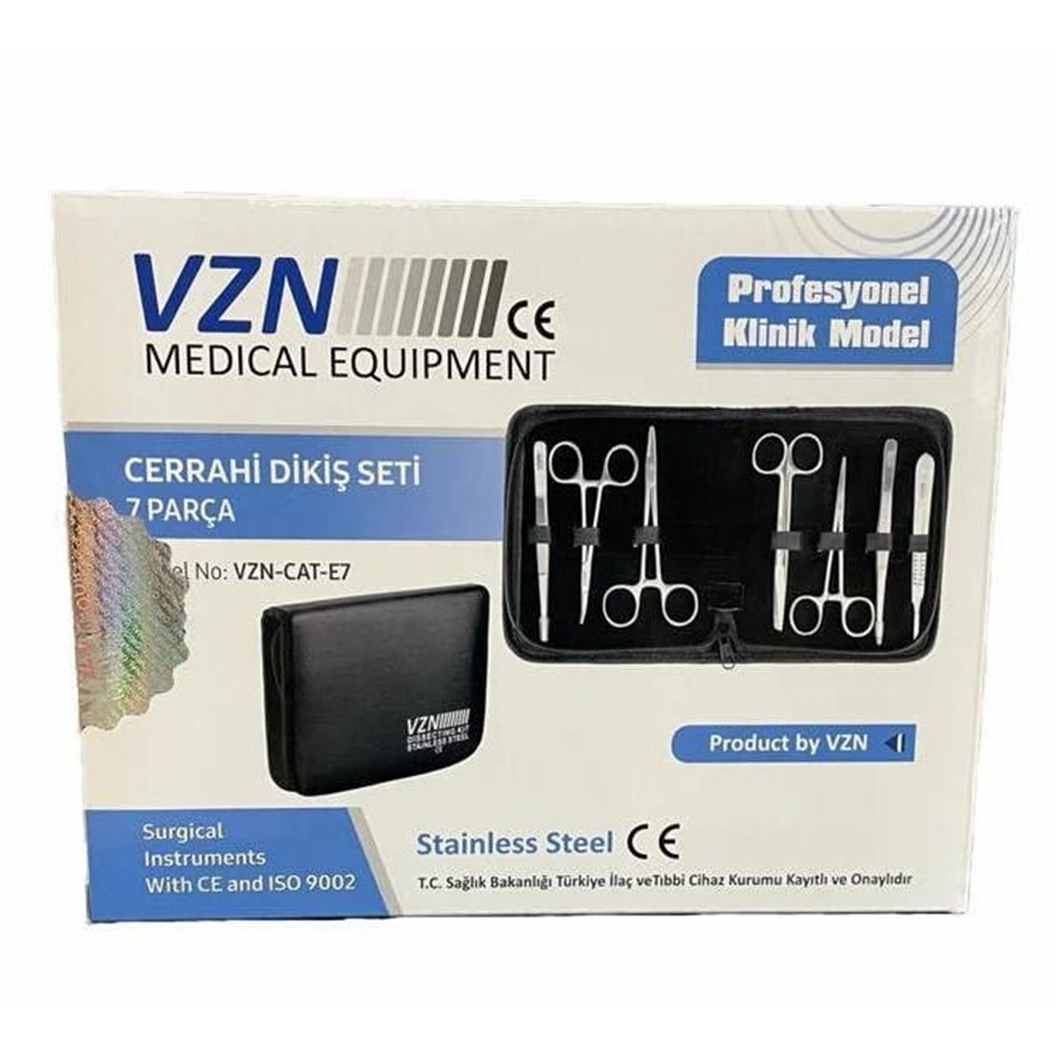 Medikal paslanmaz çelikten üretilmiş VZN Marka 7'li Cerrahi Dikiş Seti, dikiş atma işlemlerinin güvenli ve hassas bir şekilde gerçekleştirilmesi için gereken tüm cerrahi aletleri bir arada sunmaktadır. Dokuya zarar vermeden, profesyonel düzeyde kullanım sağlayan bu set, cerrahiden estetik uygulamalara kadar geniş bir yelpazede kullanılabilir.
