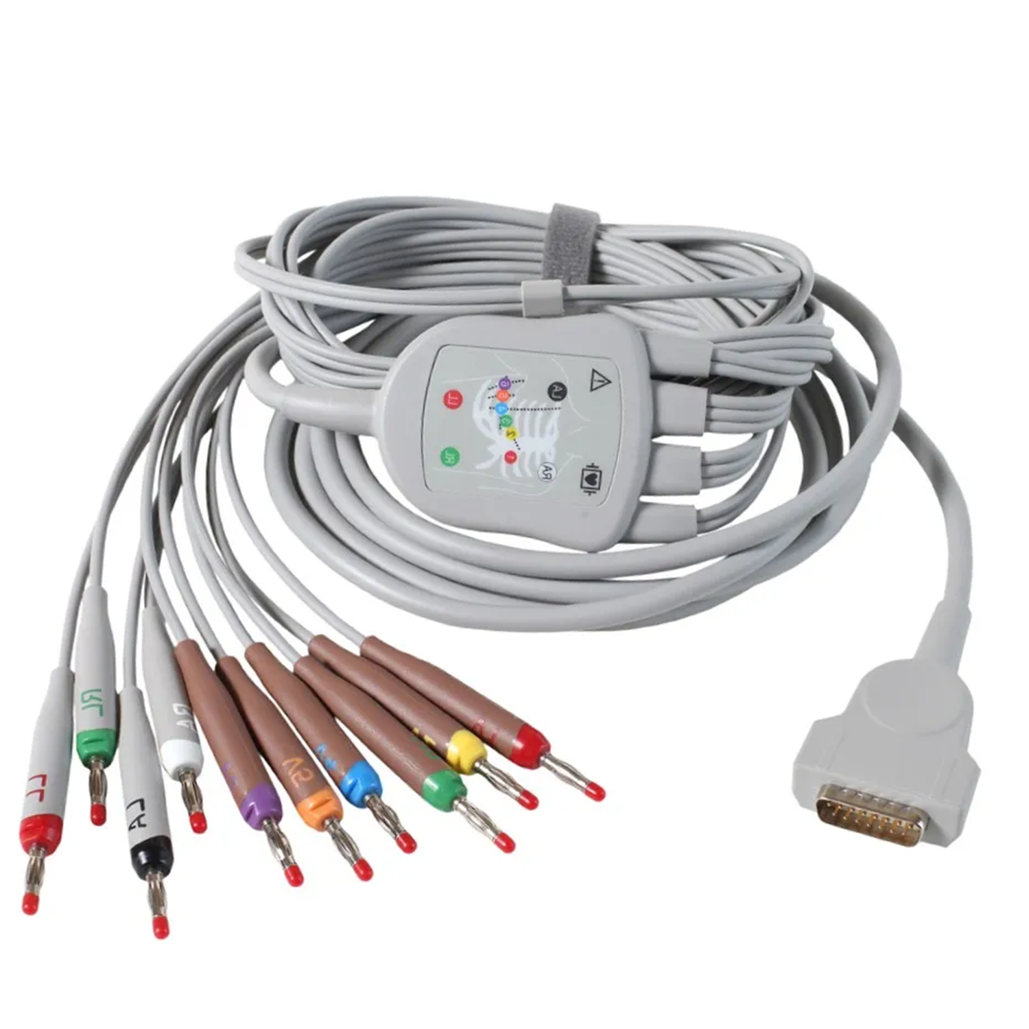 EKG kabloları dirençli ve dirençsiz seçenekleri eşliğinde kullanımınıza sunuluyor. Defibrilatör koruması için dirençler gövde bölümüne yerleştirilmiş durumda. Geniş konnektör seçenekleri sunan EKG kabloları çok uzun yıllar deforme olmadan kullanım imkanı sunacak bir kaliteye sahiptir.