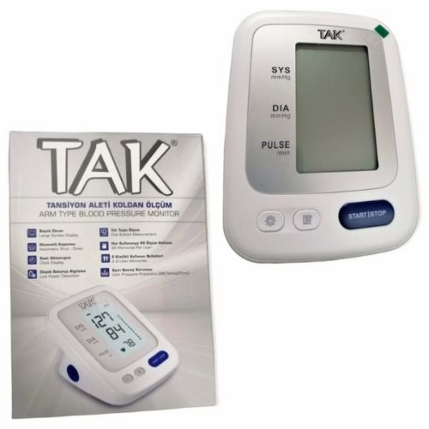 Geniş LCD ekran Her kullanıcı için 99 ölçüm hafızası Düzensiz kalp atımı göstergesi Son 3 ölçümün ortalaması Geniş kaf ölçüsü Pil uyarı sembolü Otomatik kapanma 4 Adet AA pil ile çalışmaktadır. (Kutu içerisinde mevcuttur.)