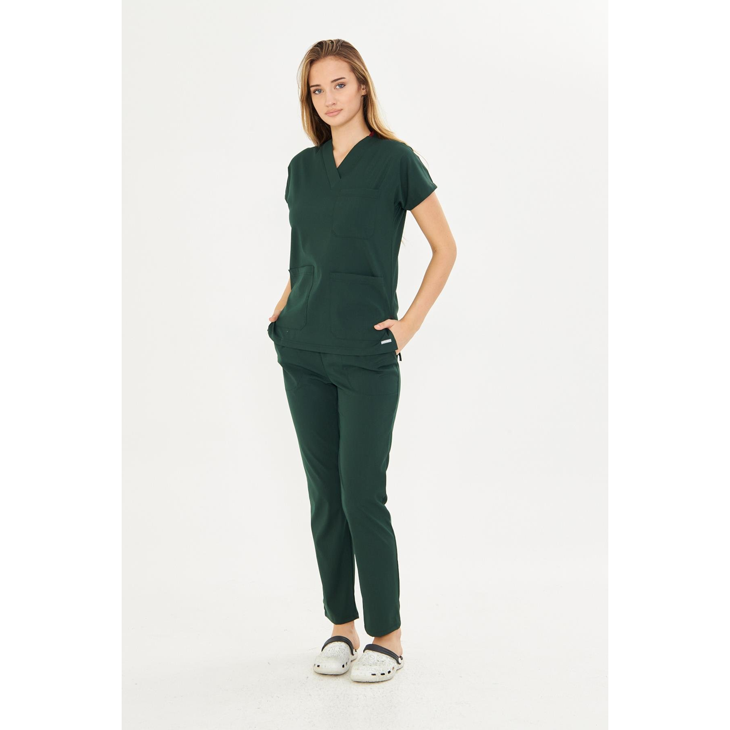 Ördek Başı Yeşili Likralı Greys Scrubs Takım XXS